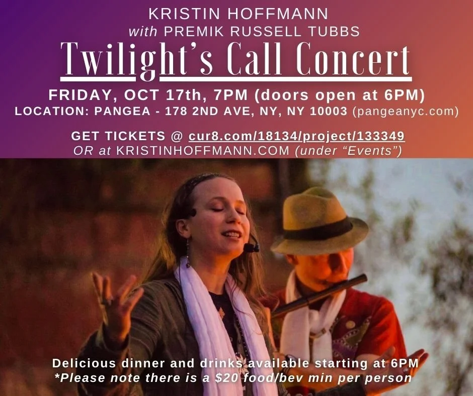 Feel the haunting ethereal beauty of Twilight’s Call, a concert to inspire the soul and renew the spirit! Kristin will be joined by acclaimed multi-instrumentalist Premik Russell Tubbs on flute, sax, lap steel, and wind synth. Let the music entrance you into the realms of mystery and heavenly beauty.